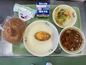今日の給食はビーフシチューです。