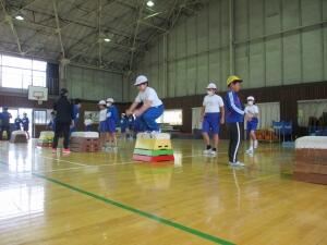 「跳ぶ」力を強化するため、体全体を使ってジャンプをする練習をしました。