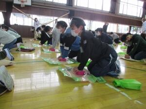 一人一つ「あっぱくん」を使って、熱心に心肺蘇生の仕方を学びました。