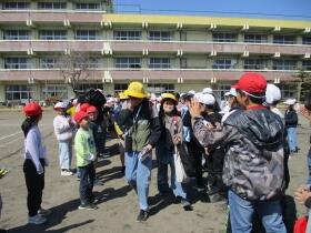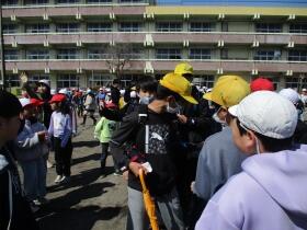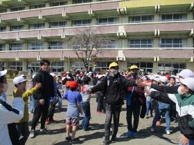 昼休み、外で遊んでいた下級生が、自然と列になり、6年生とのお別れを惜しんでいました。