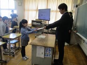 各教室で校長先生より修了証が授与されました。