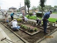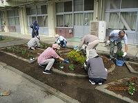 8月29日(木)に保健室前の花壇を、薗部2丁目むつみ会と子供会の皆様に整備してもらいました。