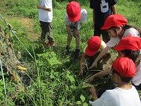 草に隠れている虫を見つけて、みんなに教えていました。