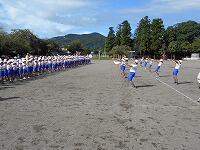 猛暑のなか、全体練習、学年種目に
