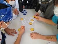 チョコペンを使って、クッキーに絵を描いていきます。