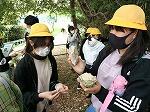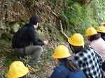 八幡山では、削られた地面を見たり、触ったりすることで、泥岩や砂岩、凝灰岩などを見分け、地層のつくりを学ぶことができました。