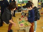 子どもたちは、猿橋先生が、準備してくださったいろいろな飾りを見て、目を輝かせていました。夢中になって思い思いに飾りをつけて、自分だけの飾りをつけたブローチができあがりました。