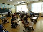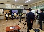 今日は朝の活動の時間に、毎月読み聞かせに来てくださっているスマイルさん、日頃からお世話になっている駐在所、交通指導員さん、スクールガードリーダーさんに来校していただき、感謝の会を行いました。感染症対策として、会議室からリモートで各教室をつないで行いました。