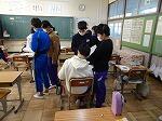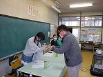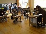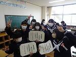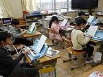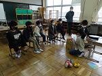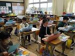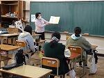 5時間目のことです。廊下を歩いていると、2階あたりから、けんばんハーモニカの演奏が聞こえてきました。曲は聞き覚えのある「喜びの歌」、鼓笛で演奏する曲です。メロディに誘われて近づいてみると、何と3年生でした。みんなで一斉に演奏しているのですが、1月の段階であまりに上手な演奏だったので、話を聞くと冬休みから家で練習をがんばっていた児童もいたそうです。一番難しい「校歌」の演奏も聴かせてくれました。