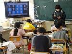 また、別のクラスでは、先日のタブレット研修を生かして、早速ワークシートを作成し、授業を行っていました。教師が配信したワークシートに一人一人がタブレットで書き込み、大型モニターにそれぞれの進捗状況が映し出されていました。解答が終わった子どもはタブレットを操作し、できたことを伝えます。すると、大型モニターの画面は青く表示される仕組みになっています。欠席している児童も教室にいる児童と同じようにタブレットを操作し、終わると青く表示されていました。おうちでもがんばっていますね。