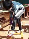 図工「のこぎりひいてザクザクザク」の学習で初めて、のこぎりを使いました。今日は角材をのこぎりで、時間いっぱい切りました。初めは、角材を足でおさせることも、のこぎりの歯を角材に入れることも、両手で押したり引いたりすることもできませんでした。けれど、時間が経つとあちこちから「ザク、ザク、ザク」と、とてもよい音が聞こえてきました。「大工さんってすごいなあ。大工さんの苦労が分かったよ。」「もっと切りたいなあ。」と、楽しそうでした。
