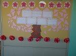 1~5年生の教室の壁面には、卒業を祝う飾り付けも華やかです。
