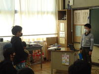 6年生は水害について学んだこと、5年生は巴波川について調べたこと、4年生はよしず作りやヨシを使った紙すき体験などについて発表しました。緊張しながらも和やかな雰囲気で、自信をもって発表することができました。「OKです!」の声にみんなで拍手をしました。