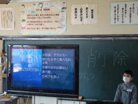 終業式は、校長室から各教室をオンラインでつないで行いました。校長先生からは、2学期を振り返って「5つのあ」について、お話がありました。児童代表作文発表では、3年生、6年生が2学期にがんばったことやこれからやってみたいことなどを発表しました。素晴らしい発表でした。また、校長先生が2学期の主な活動の様子を動画でまとめてくださったものを配信しました。教室では、次々と写真が変わる度、歓声が上がり、楽しく振り返ることができました。