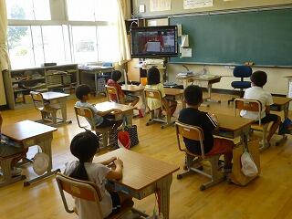 始業式は、校長室と各教室をつないでオンラインで行いました。