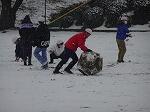 休み時間になるのを心待ちにしていた子どもたち。次々と外へ飛び出し、校庭から元気な声が聞こえてきました。雪合戦や雪だるま作りで大騒ぎ。先生方も外で一緒に遊びました。雪合戦の的になっている先生は大丈夫でしょうか。雪だるまの頭が重くて、先生に手伝ってもらって完成しました。