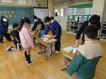 授業中ではなかったので、近くに先生がいなかった子どももいました。これまで、いざという時に安全な行動ができるように指導してきました。子どもたちは、室内では身を守るため机の下にもぐったり、外ではすぐ遊びをやめて、建物や倒れやすい物から離れ、身を低くする姿勢をとったりすることができました。その後、教室で人数確認を行い、振り返りをしました。急な訓練で驚いたと思いますが、子どもたちは、それぞれの場所で正しい避難を行い、大切な命を守る行動を確認することができました。