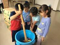 給食センターでは、調理員さんが実際に使っている道具を体験させていただきました。家庭で使っているのと違い、その大きさに驚き、大変さを実感していました。給食を残さず食べようと感じていました。
