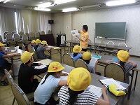 市役所を出て、巴波川のようすを見ました。部屋地区を流れるようすとの違いを感じていました。道の駅みかもでは、屋外で昼食を食べる予定でしたが、施設の方が熱中症を心配していただき、換気のできる冷房のある部屋を特別に使わせてくださいました。道の駅の由来や役割を教わることができました。