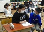 4年生が、総合的な学習の時間に部屋地区の伝統的な産業を調べています。今日は、新波の提灯について、田中さんを講師にお招きしてインタビューしたり、実際に提灯づくりを体験したりしました。