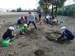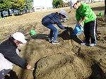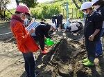 5年生が、校庭の砂場で流れる水の働きについて調べる実験をしました。
