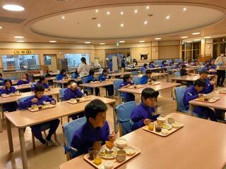 ハイキングを楽しんだら、お腹が空いていました。夕飯は、三鴨小と一緒の時間に食べています。