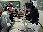 学校のガスレンジは回すタイプの物で、火を付けるのもこわごわ行っていました。包丁の扱い方は日頃、家で手伝いをしている児童と初めてと思われる児童で一目瞭然でした。材料を切ること、炒めること、盛り付けること、洗い物をすること、調理には様々な行程があり、児童は互いに教え合いながら取り組んでいました。できあがった料理は、赤や黄色、緑と彩りのきれいな物もありました。緑が苦手で、入れていない人もいたようです。