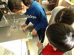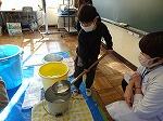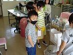 ものづくりクラブでは、せっけん作りの様子を見学しました。溶かしたせっけんに食紅で色を付けて型に入れる工程を興味深く見ていました。