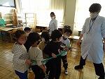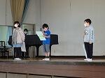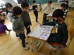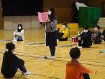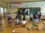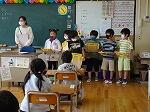 互いにあいさつをした後、勝ち抜きじゃんけん、学校クイズをしました。じゃんけんの前に一人一人の名前や一言紹介があり、幼稚園のときに一緒だった友達もいたようです。
