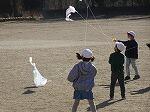 糸をあまり長くしないようにしてみましたが、風のいきおいで高くとびあがりました。子どもたちはうれしくて大きな声をあげて喜びました。