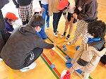 スポーツクラブでは、地域のボランティアさんからグランドゴルフを教わっていました。実際に球を打つ体験をさせてもらいました。