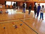 2つのチームに分かれて、目標の白いボールに近づけるように、自分の球を転がしたり、投げたりしました。作戦を立てて投げる姿や、目標にすごく近づいて褒め合う姿が見られました。