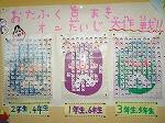 4年生は広島県、5年生は宮城県、6年生は徳島県を担当しました。子どもたちは、それぞれの県の特産物やゆるキャラを調べ、何を描くかアイデアをスケッチしたり、レイアウトを考えたりすることをがんばりました。