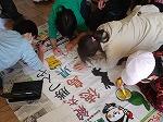 1年生が、たこを作りました。自分の好きな絵を描いて満足そうです。