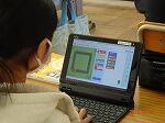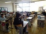 前回、ミシンに糸をかけ、下糸の準備をし、直線縫いをやりました。今日は練習布でさらに縫い目の細かさを変えるなどして練習しました。下糸が絡んだり、下糸を引き出したりするときは、近くの先生に教えてもらって、予定の学習が終わりました。