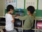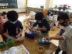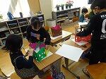 1年生は、家から持ってきたいろいろな形の箱などを使って工作をしました。お菓子の箱やポテトチップスの容器の形から、自分のイメージをふくらませていました。