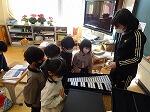 「まんなかをたたくときれいな音がでるよ。」「やさしくたたくといいよ。」など、気づいたことを伝え合いました。最後は、自分の演奏したい音の部分を選んで、演奏することができました。