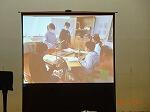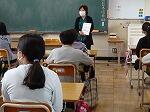 はじめに、前もって質問していたことについて中学生が教えてくれました。勉強のこと、部活のことなどプレゼンテーションソフトで作成した資料も使って、丁寧に説明くれました。