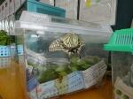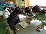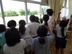 生き物大好き!理科大好き!の3年生。教室でいろいろな生き物を育てたり、理科で学習しているチョウを卵から育てたりしています。朝から、理科を教えてくれている佐藤先生と一緒に、チョウを飼っている虫かごに新しい葉を入れたり新聞紙を交換したりしています。休み時間になると、餌のキャベツを補充したりフンの掃除をしたり、言われなくても自分たちでどんどんやります。大切に育てているチョウが、モンシロチョウ4ひき、アゲハチョウ1ぴき成虫になり、みんなで教室の窓から「バイバーイ