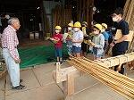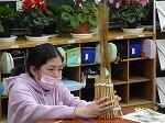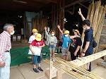 子どもたちは、事前に調べたことをもとに質問したり、よしず作りの手順を教えていただいたりしました。子どもたちは、長いヨシの扱い方に気を付けて、声を掛け合い、協力して手際よくヨシを編んでいきました。「ヨシが軽いのでびっくりしました。」「ヨシを編むのは楽しかったです。」「また来てもいいですか。」最後に体験した感想を発表しました。自分たちで編んだよしずはお土産にいただきました。