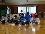 2時間目は5・6年生、3時間目は3・4年生が「投力の向上」を目指し、授業を行いました。準備体操の後、講師の先生に投げるフォームやポイントを教えていただき、練習を始めました。「地面にたたきつけるように強く投げよう」「左手は投げる方向に向けて」「もっと上に」「よくなったね」一人一人アドバイスをもらって練習できました。