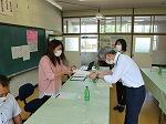 登校時には、昇降口で職員が健康チェックカードを確認しました。記入漏れやご家族の体調不良等がないか確認してから教室に入るようにしています。