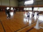 本校では、少人数なので、一人一個ボールを使って練習することができます。基本のドリブルやパス、シュートを繰り返し練習したり、攻めと守りに分けたゲームを練習したりしました。