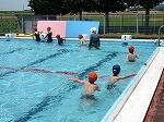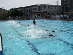 バタ足、クロールなど、足や腕の動かし方のポイントを確認しながら練習しました。プールの外に出ると、少し風が冷たかったようですが、きれいなプールで気持ちよく学習することができました。