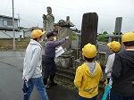 6年生は、スクルーバスに乗って部屋地区に残る水害の跡や石碑、防災施設を巡り、水害について学習をしました。地域コーディネーターの田熊さんや地域の方からお話を伺うことで、部屋地区の水害の歴史だけでなく、日頃の災害への備えの大切さに気付いたようでした。家庭に帰ってから、災害時の避難場所や避難経路を家族と話し合いたいと話す子ども達がたくさんいました。