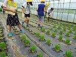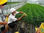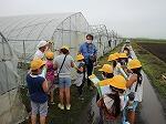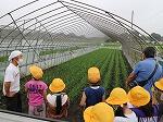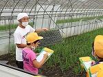 子どもたちは、説明を聞きながらイチゴ農家の仕事と比べていました。1つのハウスに1500株育てていることや、一度枯れるまで育てた後で、土の中で栄養をたくわえると、次に出てきたニラを収穫しても、1月ほどでまた育つことなどのお話しを聞くことができました。