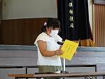 続いて、終業式では、2年生、5年生の代表児童の言葉が発表されました。(作文の内容は学校だよりに掲載してあります。)二人とも素晴らしい発表でした。