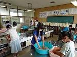 今回は体育着の手もみ洗いでしたが、他にも「つまみ洗い」や「おし洗い」も学習しました。ご家庭でも実践できるよう声をかけてください。