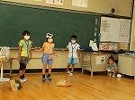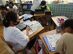 子どもたちは冷房の効いた教室で、友だちと粘土や折り紙をして遊んだり、カードゲームや工夫した遊び方をしたりしています。中には係活動の計画をしたり、勉強を教え合ったりする姿も見られました。委員会の上級生たちは、昼休みでも一生懸命仕事をしてくれていました。ありがとう!!
