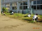 今日の朝の活動は、全校児童による除草です。カボチャやヘチマなどを育てている学級園や校舎の周りの草をとりました。6年生には、水たまりができやすいブランコの下に砂場から砂を運んでくる仕事もしてもらいました。